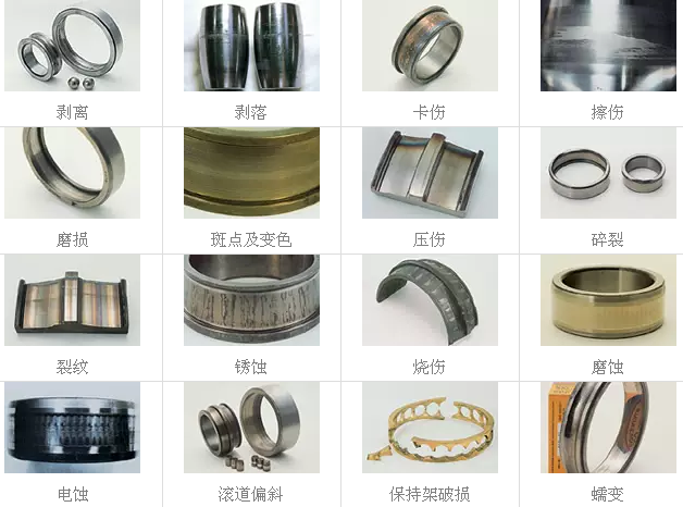 軸承損傷方式分類見下圖,根據圖片中顯示的主要特征判斷其損傷形式。