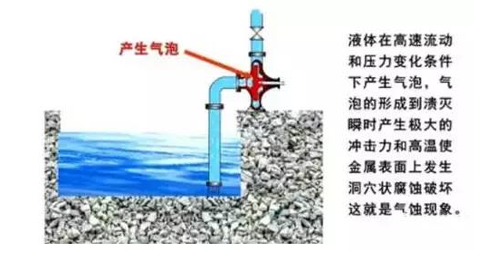 含氣泡的液體擠入高壓區(qū)后急劇凝結(jié)或破裂。因氣泡的消失產(chǎn)生局部真空,周圍的液體就以極高的速度流向氣泡中心,瞬間產(chǎn)生了極大的高達(dá)幾萬kpa的高速?zèng)_擊力,造成對(duì)葉輪和泵殼的沖擊,使材料受到侵蝕和破壞。