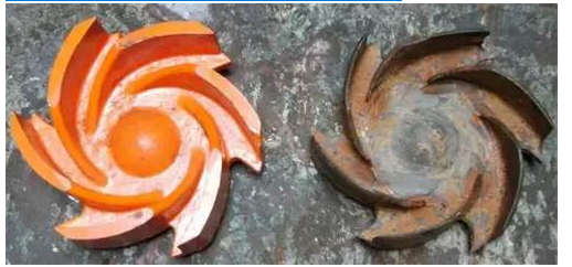 水泵壁面在高強(qiáng)度沖擊力的反復(fù)作用下,金屬表面產(chǎn)生局部變形與硬化變脆,產(chǎn)生金屬疲勞現(xiàn)象,使金屬破裂與剝落。除力學(xué)作用外,還夾雜著水體中逸出的深入活潑氣體(如氧氣)對(duì)金屬的化學(xué)腐蝕以及水體對(duì)金屬的電化學(xué)腐蝕等。在綜合作用下,水泵壁面起初是出現(xiàn)麻點(diǎn),繼而變成蜂窩狀,嚴(yán)重時(shí)壁面會(huì)在短期內(nèi)被擊空。