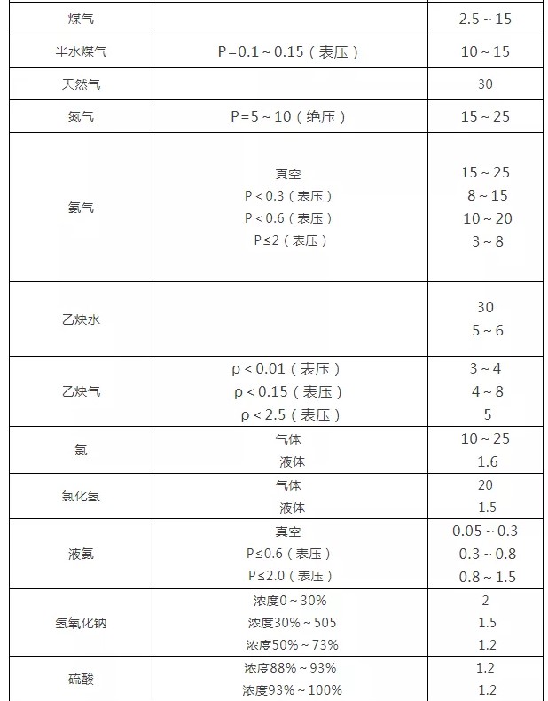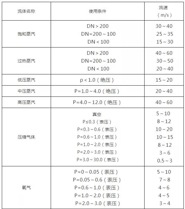 2、各種介質常用流速一覽表