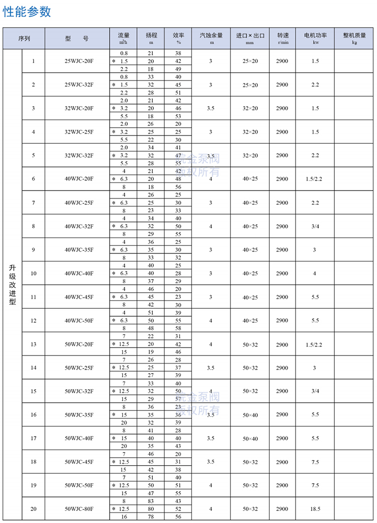 皖金泵閥襯氟磁力泵主要參數: